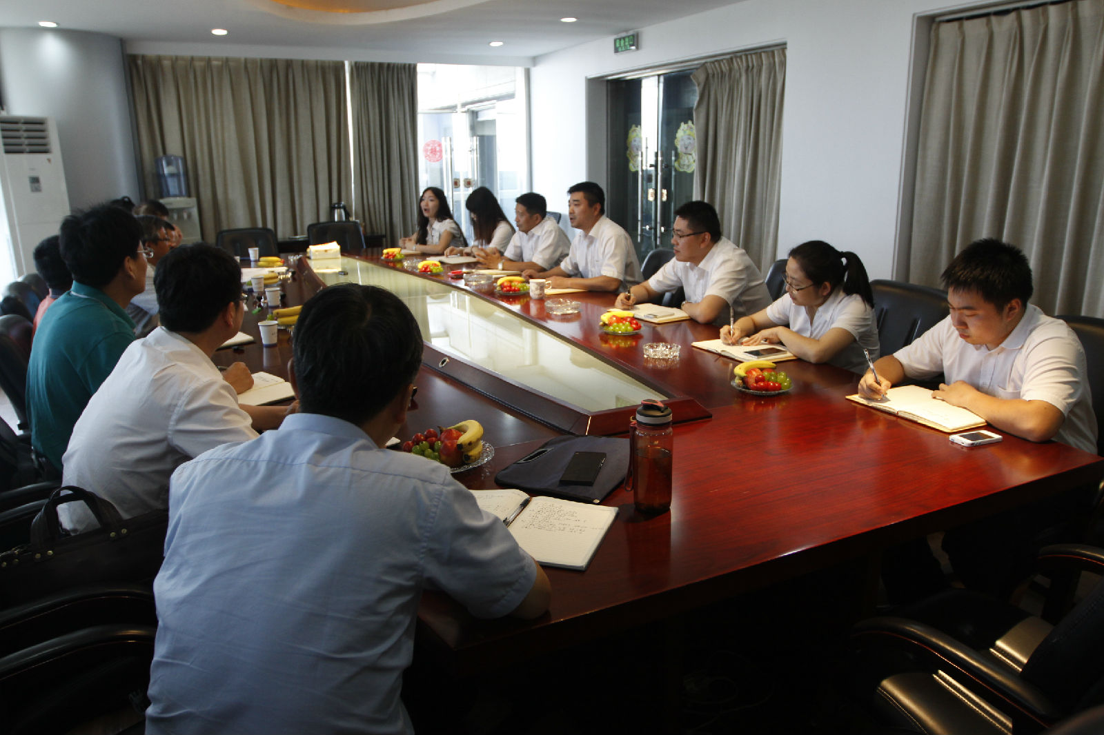 2014年6月24日下午,集团公司总经理严建华、副总经理杨永名等领导一行来到浙江透平进出口贸易有限公司考察调研。透平公司总经理毛宁对集团公司领导的到来表示热烈欢迎,随后双方进行了座谈交流,透平公司各部门部长参加会议。